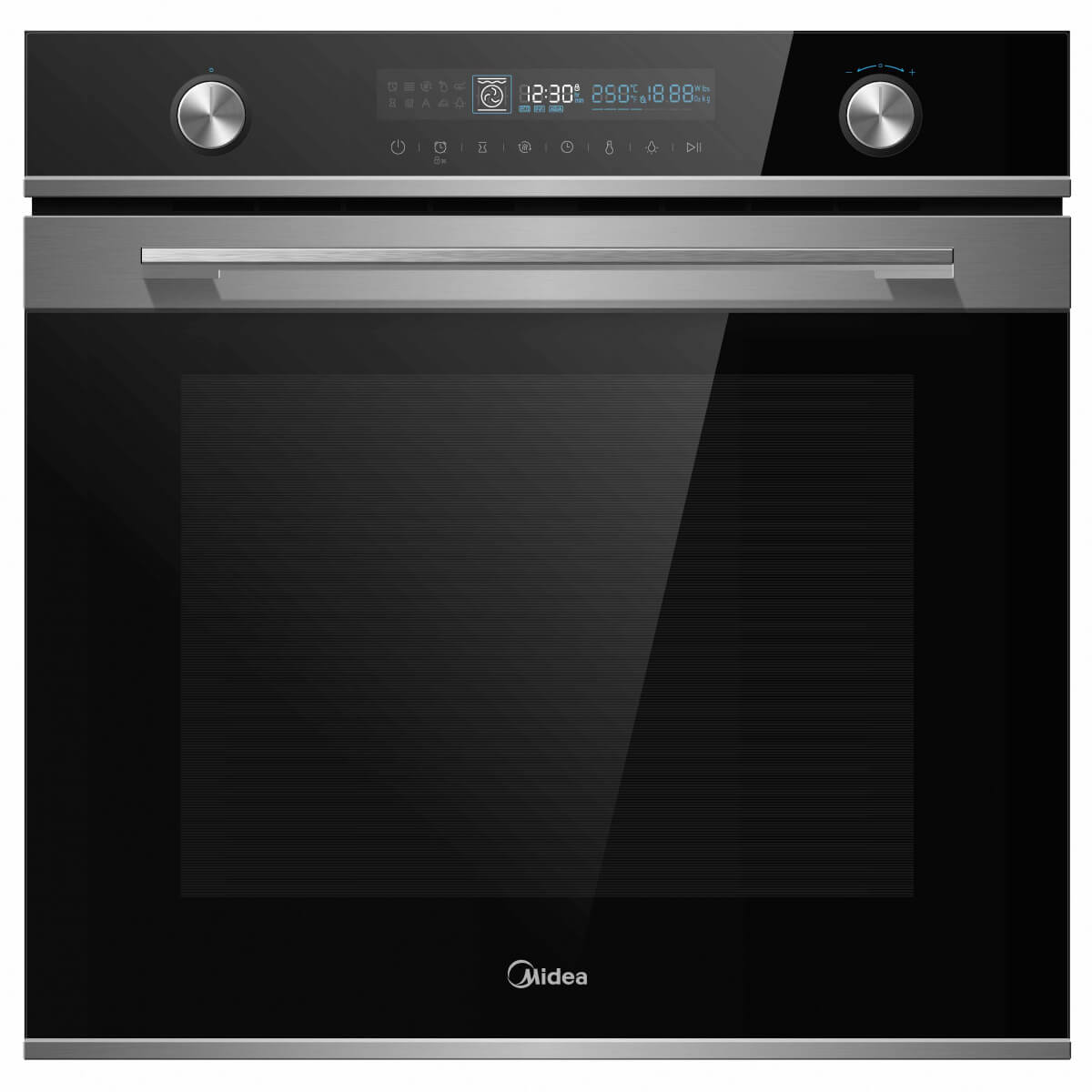 Духовые шкафы Midea имеют целую систему активного охлаждения, состоящую из нескольких важных звеньев. Первое из них находится на задней стенке духового шкафа и охлаждает ее в момент задействования конвекции. Второй расположен в верхней части прибора и отвечает за охлаждение боковых стенок, электронных плат, системы управления и нижней части духовки. В каждом духовом шкафу Midea вне зависимости от серии использована система тангенциального охлаждения, обычно присущая только дорогим моделям.