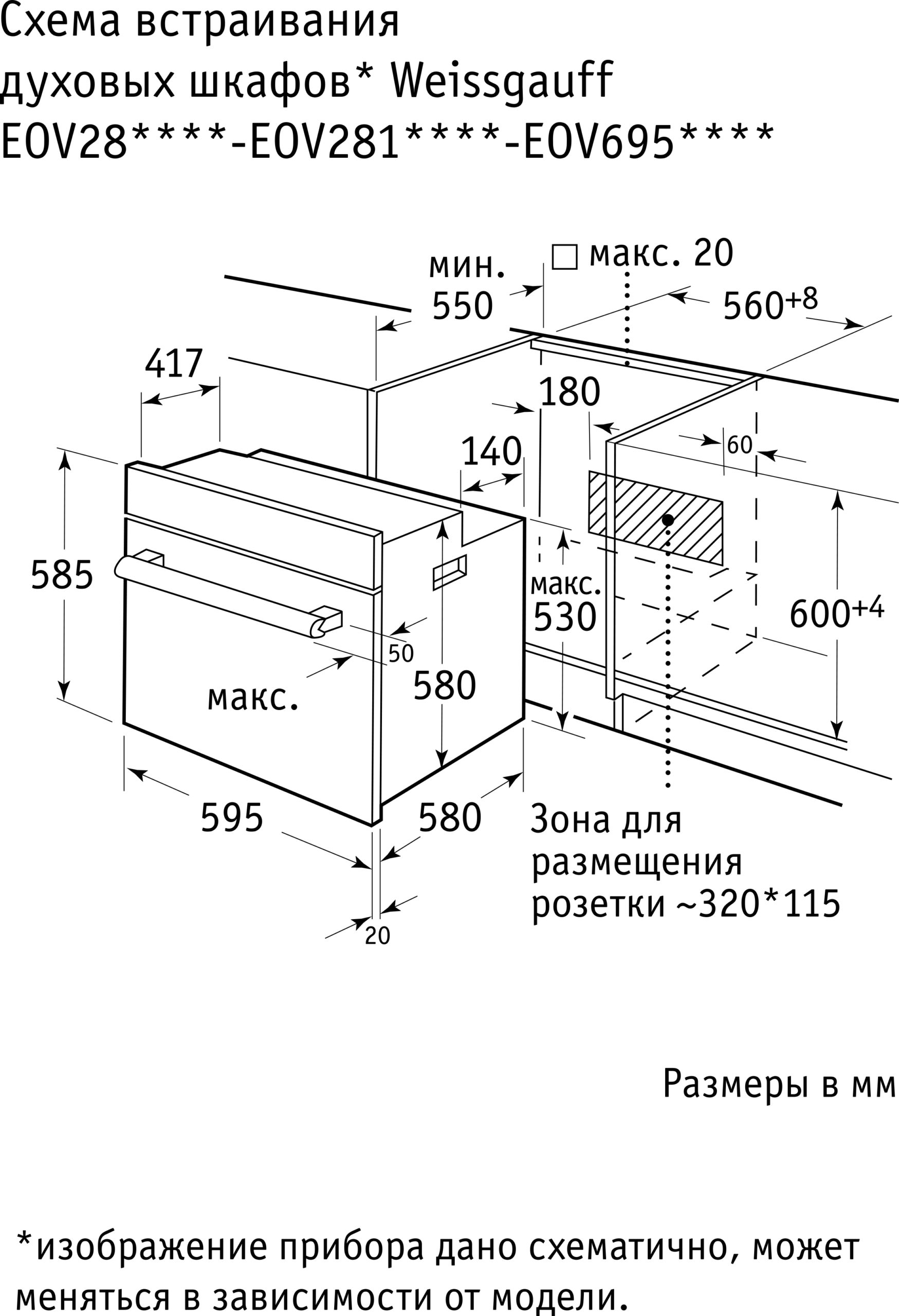 | Высота встраивания, см | 58 |