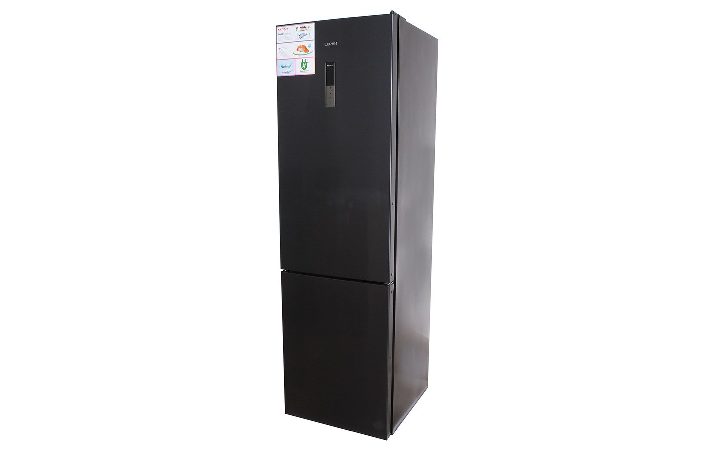 LERAN CBF 315 BK NF – холодильник, оснащенный системой No-Frost. Корпус устройства выполнен в черном цвете. Эта модель оснащена стеклянными полками, съемной полкой-решеткой для бутылок, контейнером для овощей и фруктов, ящиками морозильной камеры, резервуаром для воды. На фронтальной стороне устройства расположены ручки для открытия камер и дисплей. На специальном экране отображается температура в холодильнике, коды неисправностей и другая полезная информация. Для обеспечения максимальной герметизации двери холодильной и морозильной камер оснащены уплотнителями.