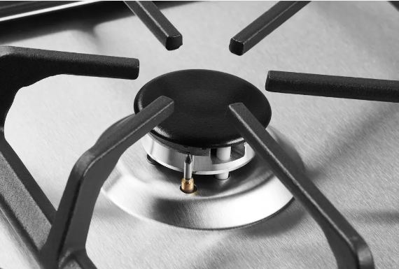 В каждую конфорку газовой панели встроена система "Газ-контроль", немедленно прекращающая подачу газа в случае угасания пламени. Это обеспечит вашу безопасность в тех ситуациях, когда огонь гаснет под порывом ветра вследствие сквозняка или из-за убегания жидкости из стоящей на конфорке посуды.
